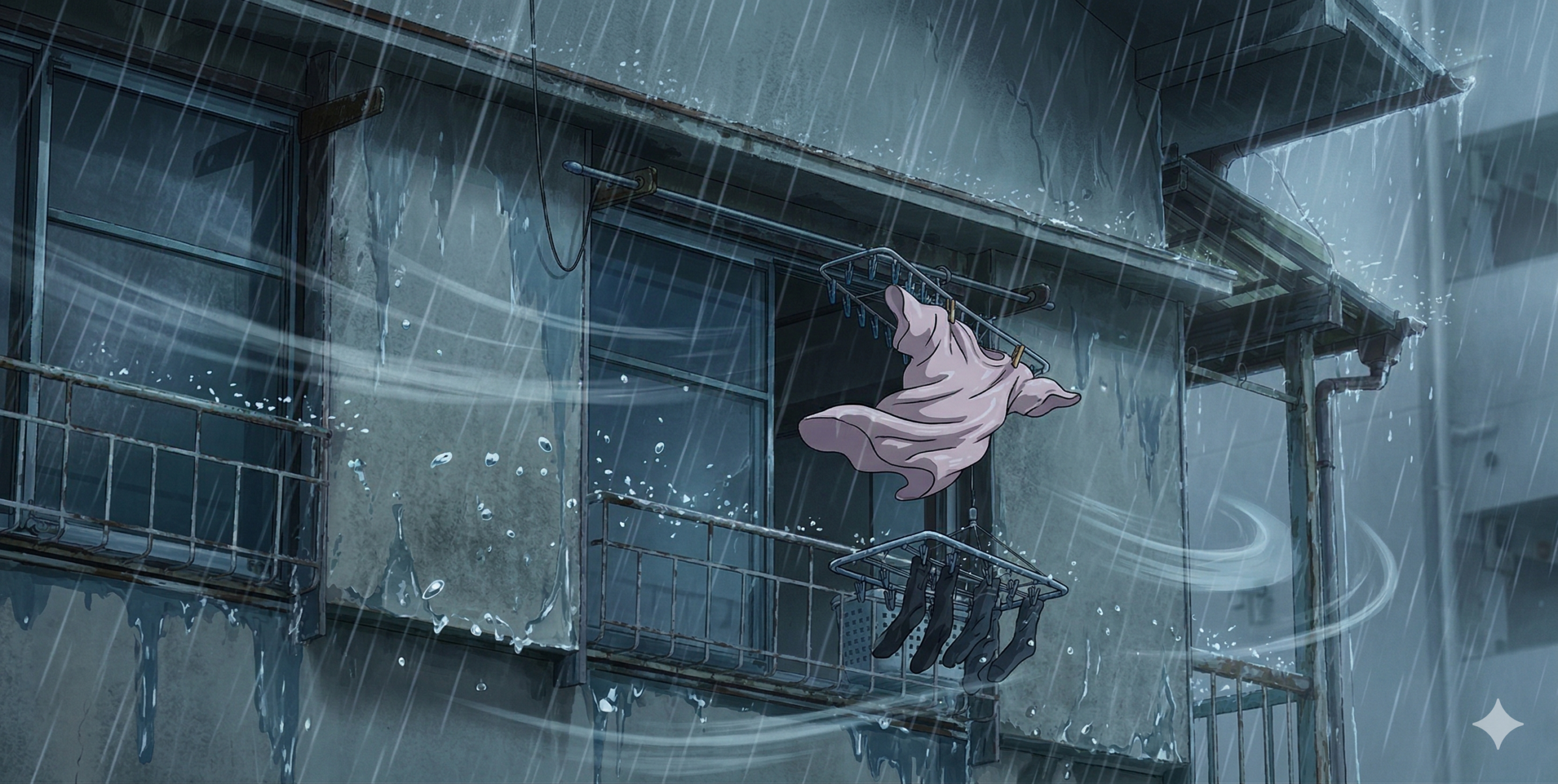 三上が洗濯物を取り込むシーン。
