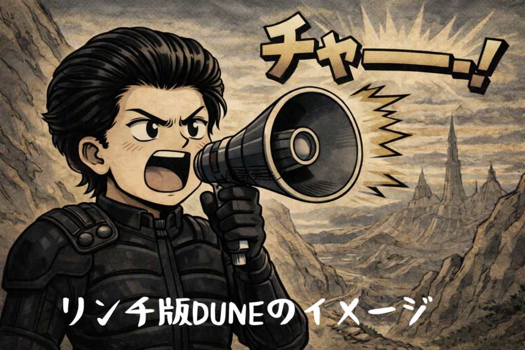 デヴィッド・リンチ版で印象的な「スパイスの摂りすぎによりほとんどもとは人間だったとは思えないほど変形してしまった航宙士」だの、「なんか口元にあててそれに向かって『チャーーーー!!』って叫ぶと音波かなんか分からないけどなんかが出てその先にあるものが破壊されるバカバカしい武器」などは、実はデヴィッド・リンチ版のオリジナルなのである。